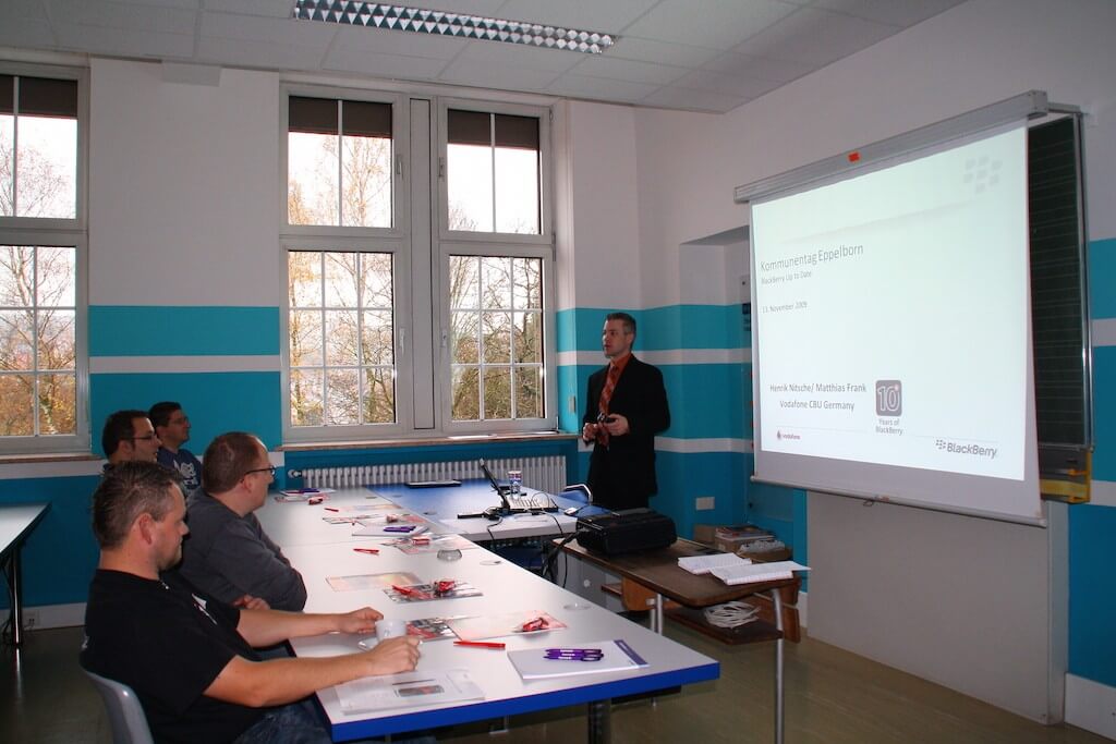 Das Thema des dritten und für dieses Jahr letzten Kommunentages war „Mobile Kommunikation“. Zu Gast waren diesmal Herr Nitsche von RIM (Research in Motion), besser bekannt unter dem Namen BlackBerry, sowie Herr Woll und Herr Meyer von Vodafone.