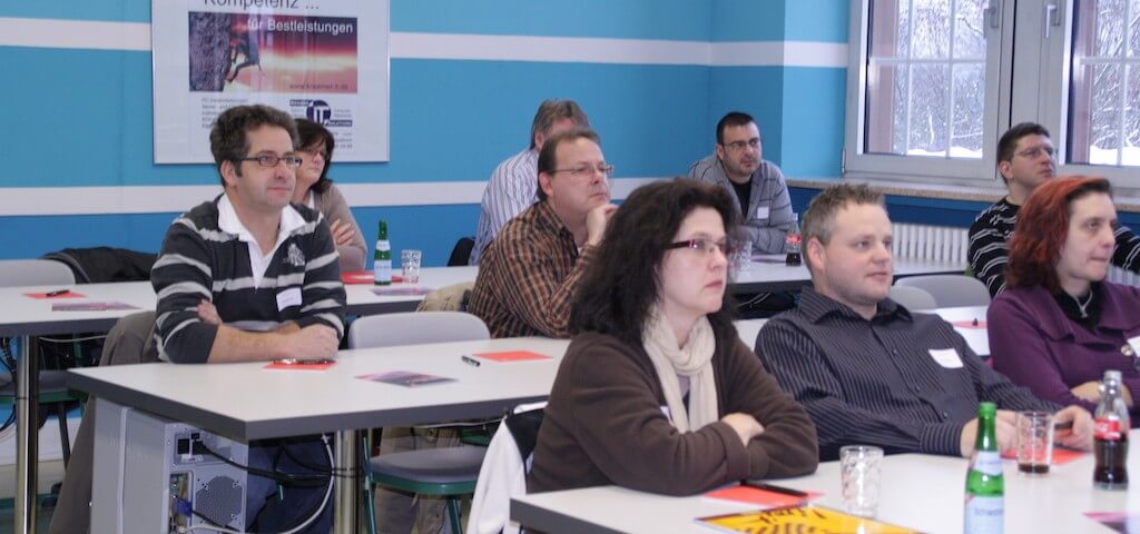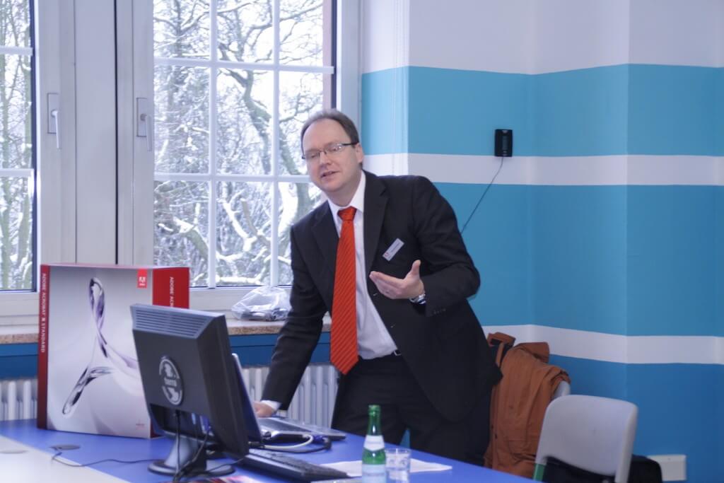 Während dem anschließenden Vortrag von Herrn Bollenbach von der Firma Adobe Systems waren einige überraschte Gesichter zu erkennen. Mit der Frage „Was soll es schon Interessantes von Adobe zu berichten geben?“ waren die meisten Teilnehmer skeptisch bezüglich der zu erwarteten Informationen über Adobe Acrobat.