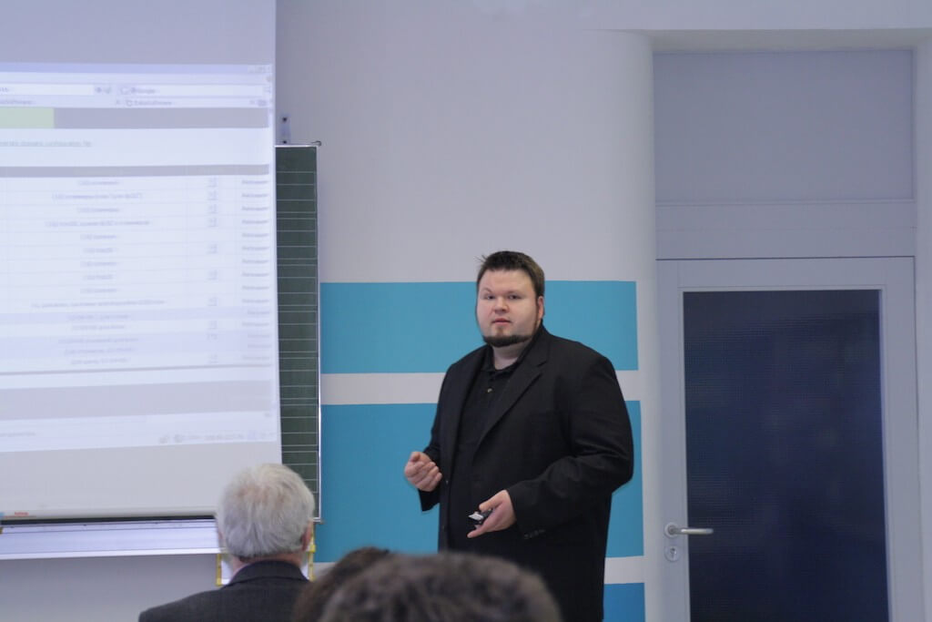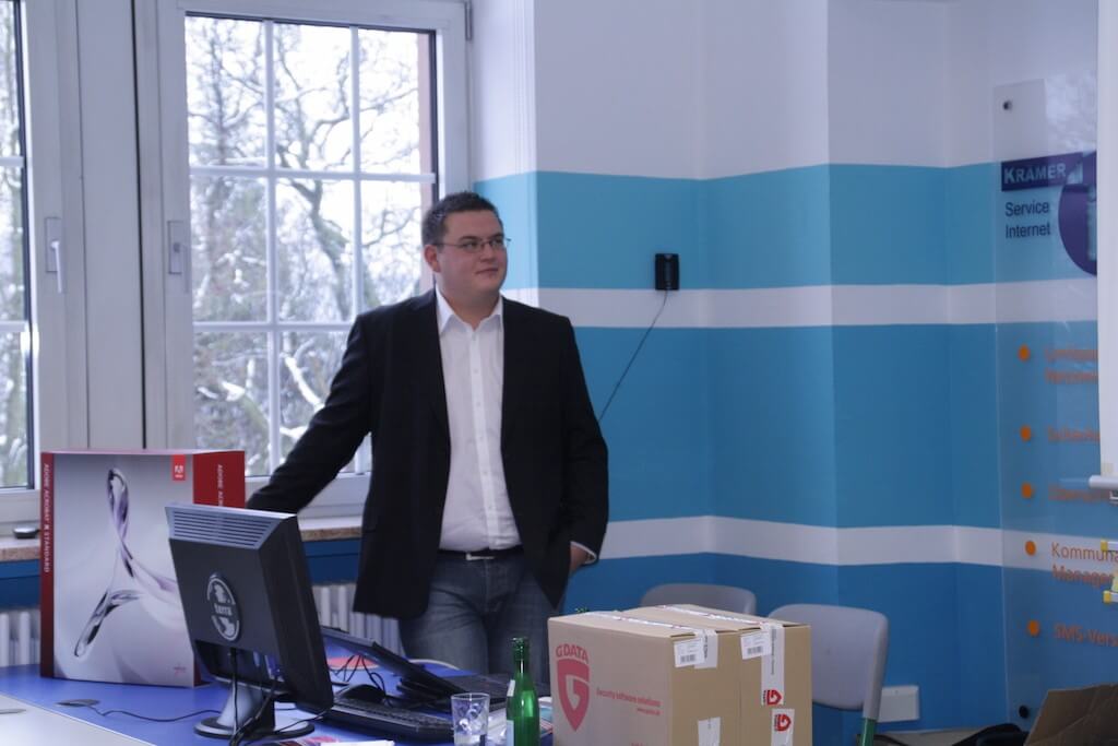 Zum Einen konnten wir Herrn Markus Bollenbach von der Firma Adobe Systems gewinnen, der einen Vortrag über die schier unbegrenzten Möglichkeiten der Adobe Acrobat Software gehalten hat. Zum Anderen besuchte uns zum wiederholten Male die Firma GData in Person von HerrMax Sonderfeld und Herr Markus Koscielny. Diesmal mit einem Vortrag zum Thema EndPoint Protection.