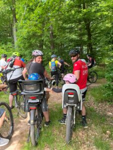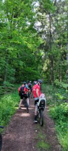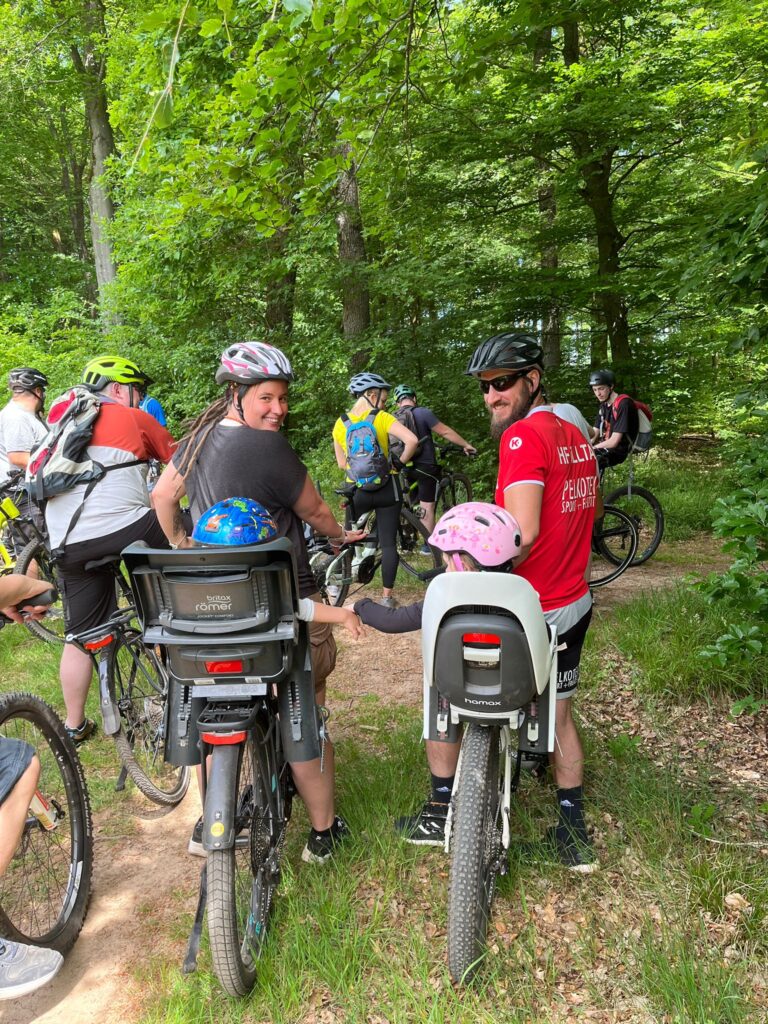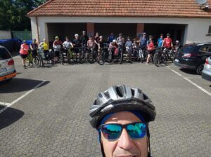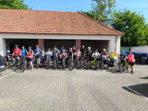 Zusammen mit Partnern und Familienangehörigen ging es mit Schwung auf das (E-)Bike, um eine abenteuerliche Tour von der alten Koßmannschule zum Gipfel des Litermont nach Macherbach zu machen.
