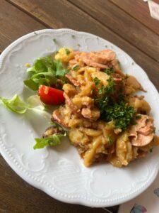 Die Belohnung wartete dann zugleich am Ziel in Macherbach, wo es im Gasthaus Pflug zum Abschluss leckere Lyonerpfanne und erfrischende Getränke gab.