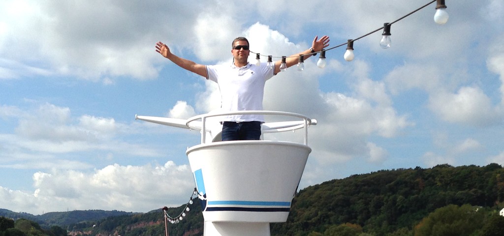 Unter der glänzenden Organisation von Kung Fu Azubi Gavino Furesi führte uns die jüngste Teamveranstaltung bei bestem Wetter deshalb nach Trier – genauer gesagt an das Moselufer Zurlauben. Knapp zwei Stunden dauerte die Schiffsrundfahrt, die uns über die Mosel durch die traumhaften Panoramen der Trierer Landschaft führte. Wie Sie auf dem Foto unschwer erkennen können, hatte unser Ko-Kapitän Dominik Carl die Lage bestens im Griff. Gerüchten zufolge hatte er damals die Hauptrolle im Kinofilm Titanic an Leonardo DiCaprio abgetreten, um sich voll und ganz auf seine Arbeit bei Krämer IT zu konzentrieren.