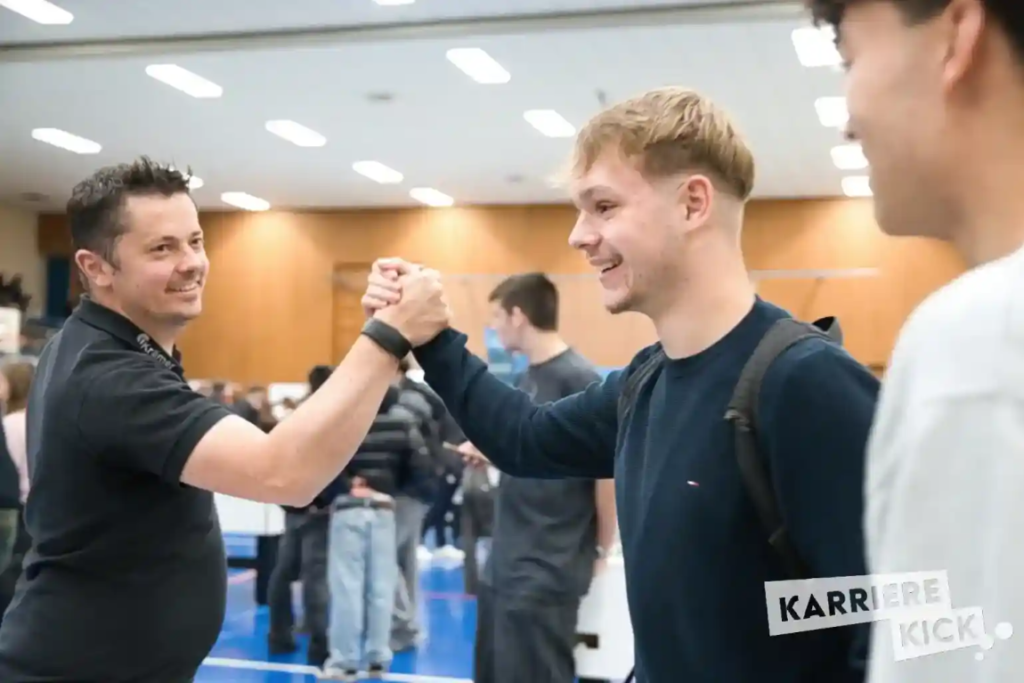 Ein Highlight für uns war, dass wir gleich zwei Schüler treffen durften, die schon bald ein Praktikum bei uns beginnen. Es war spannend, mit ihnen direkt auf Augenhöhe ins Gespräch zu kommen und sie vorab ein wenig besser kennenzulernen. Genau solche Begegnungen machen Events wie den KarriereKick so wertvoll.