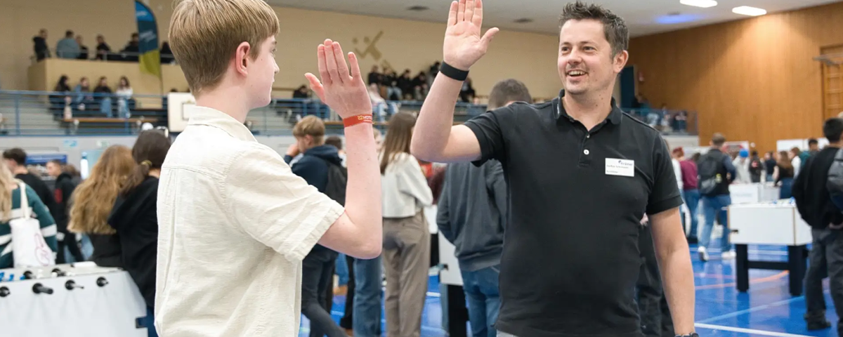 Mit über 1.000 Besuchern war die Atmosphäre in der Halle lebendig, aber entspannt. Besonders der spielerische Ansatz, bei dem kleine Fußballmatches der Einstieg ins Gespräch waren, machte die Veranstaltung einzigartig. Dieser Mix aus Sport und Berufsorientierung bot uns und den Teilnehmenden die Möglichkeit, uns von einer anderen Seite kennenzulernen. In lockerer Runde, abseits starrer Gesprächsformate, war es viel leichter, über Karrierechancen und das Arbeiten bei Krämer IT zu sprechen.