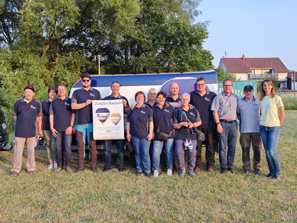 Es ist soweit: unser Heißluftballon ist offiziell getauft und kann es kaum erwarten, zukünftig den Himmel mit Farbe zu füllen.