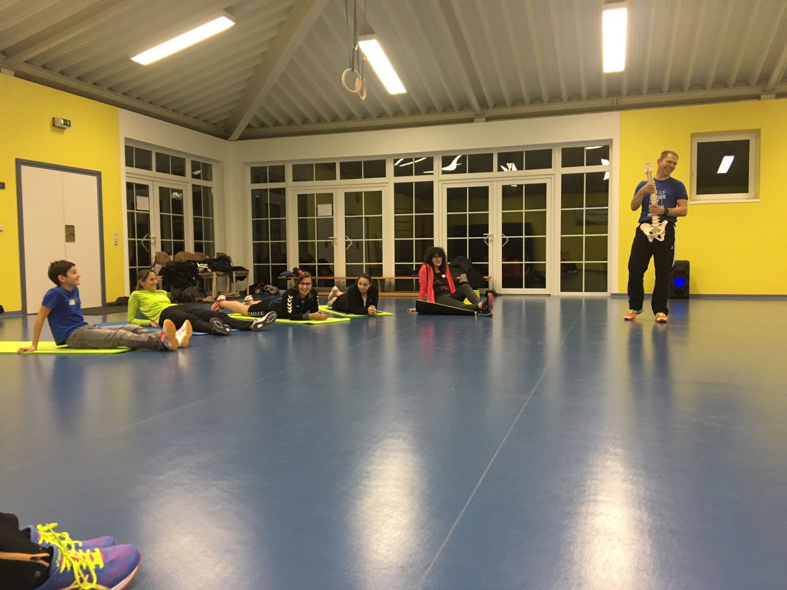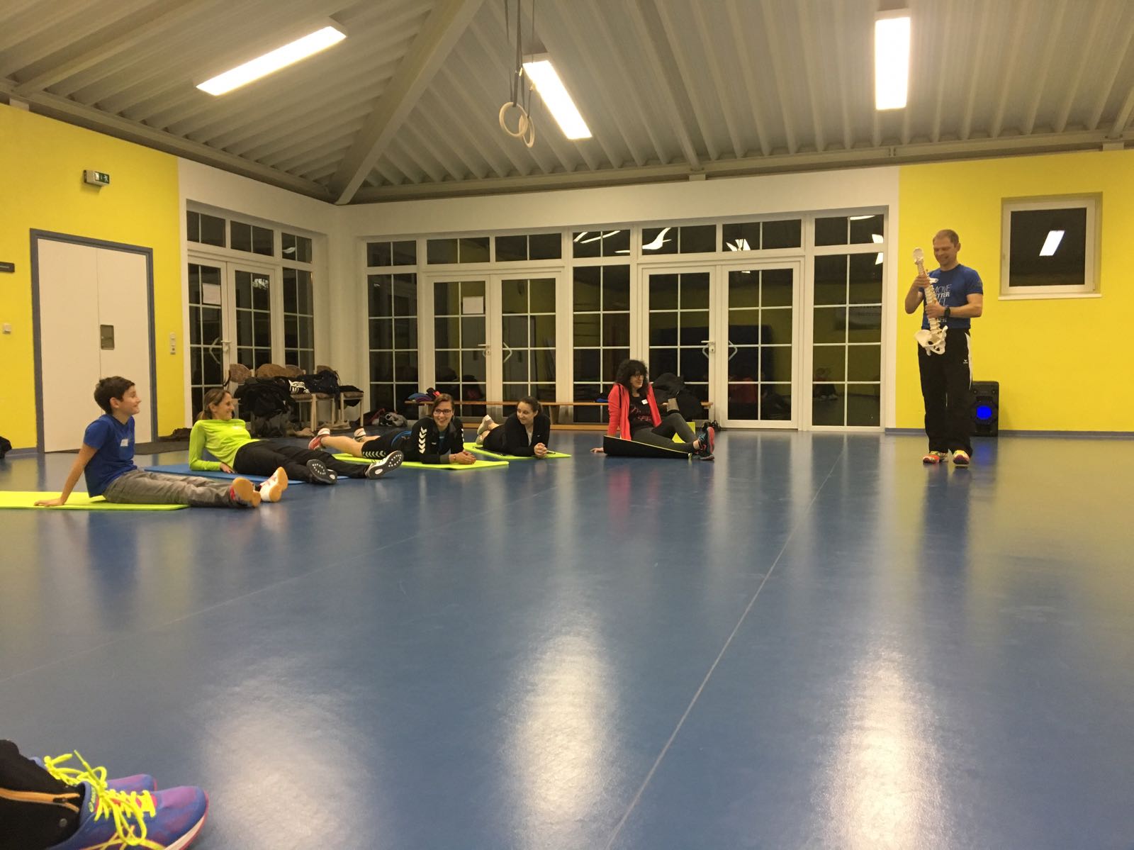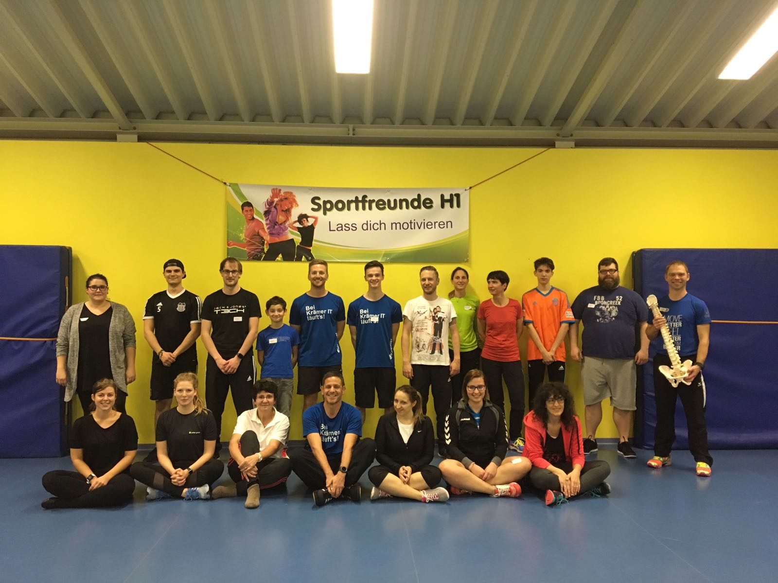 Nach ein paar lockeren Aufwärmübungen bekamen unsere Mitarbeiter eine kleine theoretische Einführung in die Anatomie eines gesunden Rückens. Normalerweise ein sehr trockenes Thema, aber unser Trainer Erik Diwersy gestaltete diese Exkursion sehr interessant. Und dann ging es richtig los! Unser Übungsleiter brachte alle Teilnehmer mit Dreh- und Streckübungen richtig ins Schwitzen. Nach einer Stunde waren alle sichtlich erschöpft, aber dennoch zufrieden und entspannt. Wir hatten an diesem Abend sehr viel Spaß und freuen uns schon auf das nächste Mal.