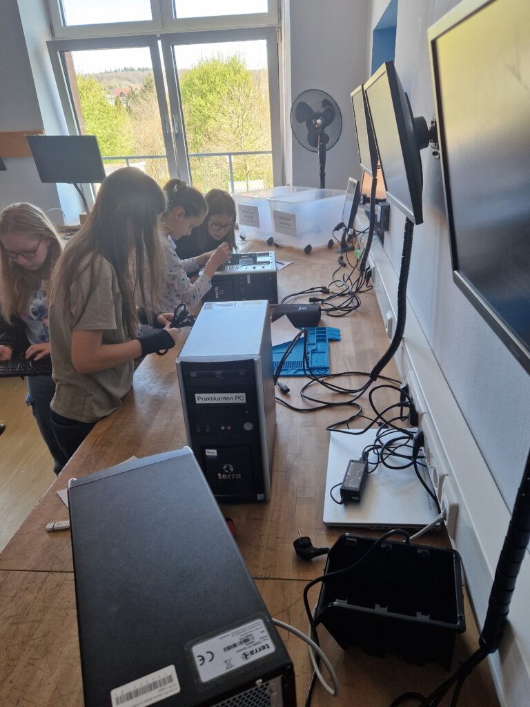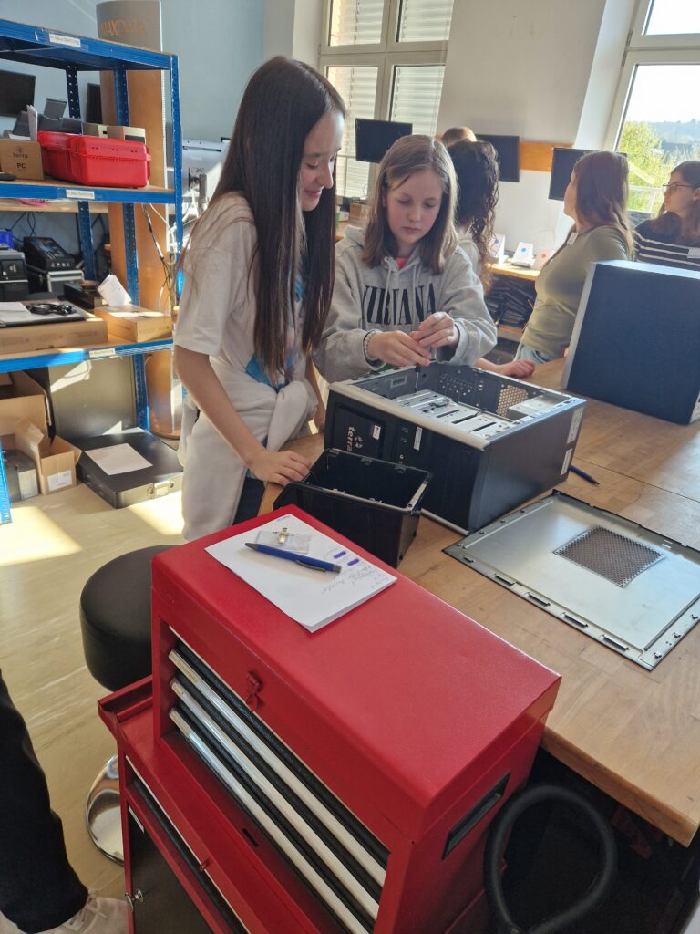 Hier wurde direkt praktisch losgelegt: Die Mädchen durften Hardware zusammenbauen, einen PC neu aufsetzen, Updates durchführen und sich einem kleinen Technik-Quiz stellen. Mit viel Neugier und Geschick waren sie dabei – und konnten echtes IT-Feeling erleben.