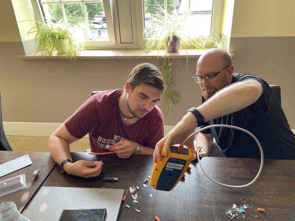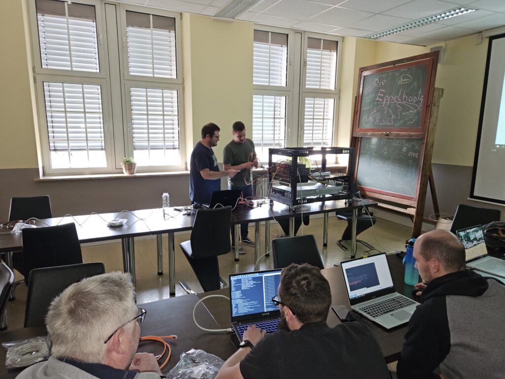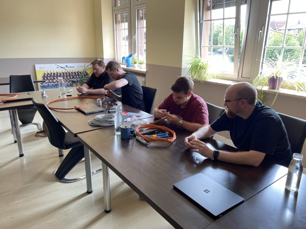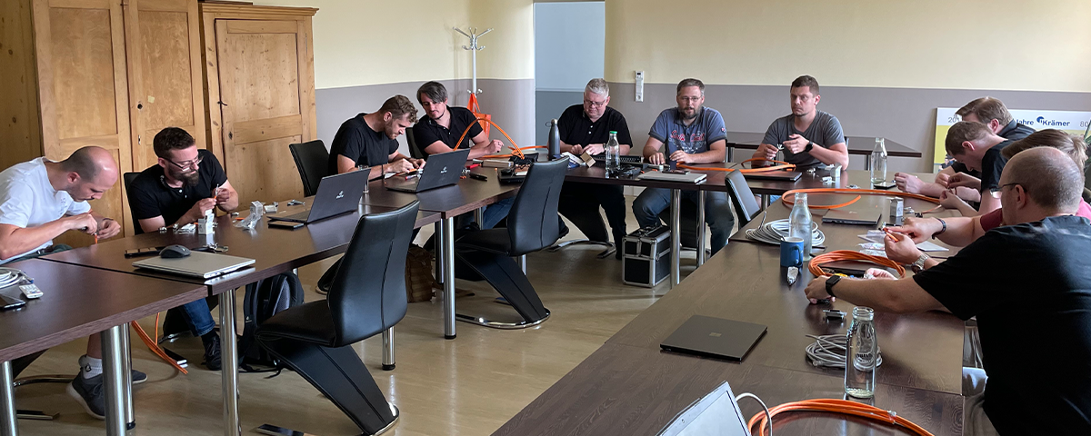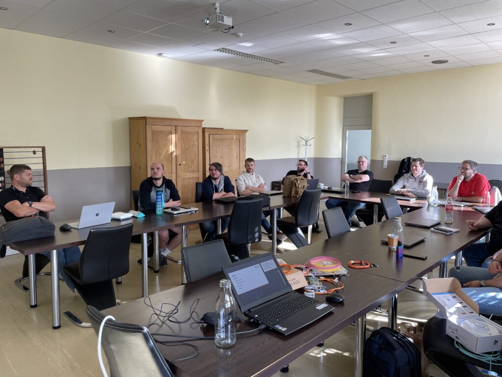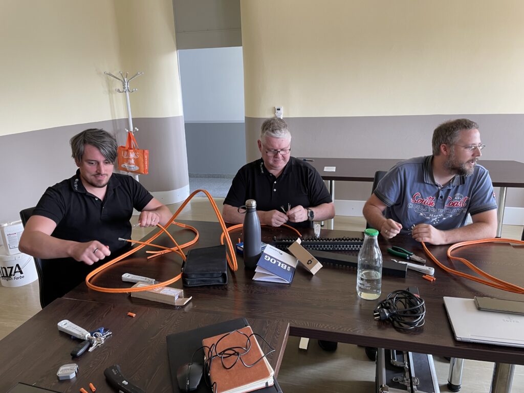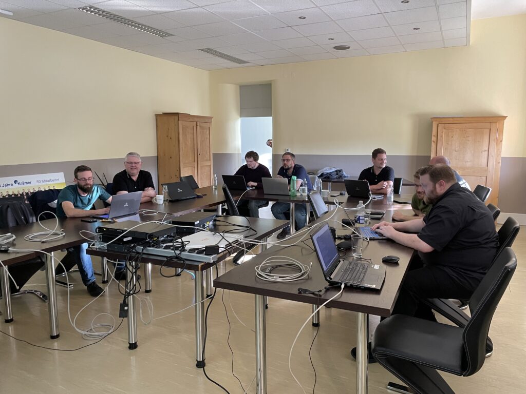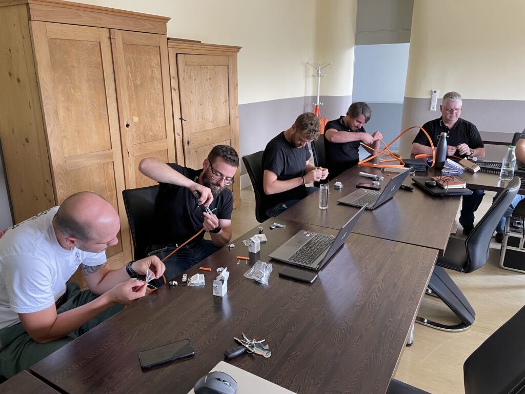 Unsere Schulung, die von Thomas Krammes, Abteilungsleitung Technik, und Jan Lorenz, Teamleitung Technik, durchgeführt wird, ist intensiv und langfristig angelegt. Damit wir sicherstellen können, dass jeder Teilnehmer gleichermaßen von den Inhalten profieren kann, werden unsere Techniker je nach Wissenstand eingeteilt. Zusätzlich zu den Schulungen für Techniker und Auszubildende, gibt es eine separate Schulung für unsere Vertriebsmitarbeiter, um Kunden bestmöglich beraten zu können. Jede der drei Gruppen durchläuft insgesamt 16 Termine à 3 Stunden, was in etwa einem Jahr Schulungsdauer entspricht. Dies ermöglicht es uns, tief in die Materie einzutauchen und sicherzustellen, dass alle Teilnehmer ein umfassendes Verständnis zum Thema Netzwerk entwickeln.