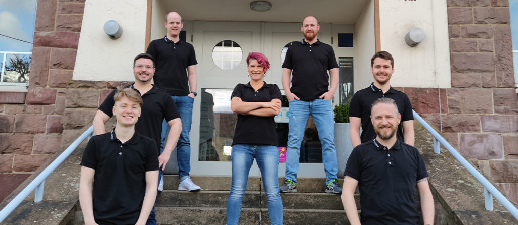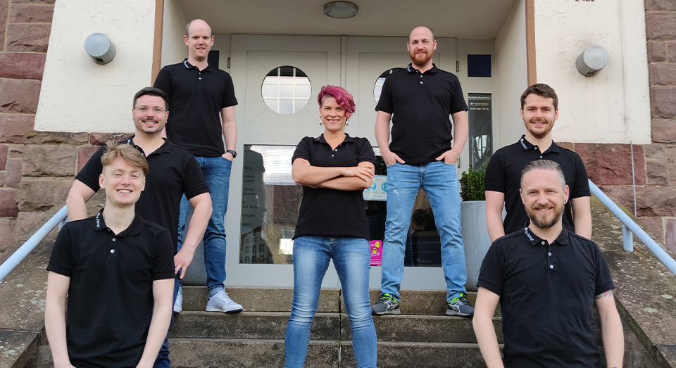 Eine Frau und acht Männer rocken täglich den Krämer IT Vertrieb. Laut Team-Chef Kevin Martin hat Nina Heidemann, als einzige Frau im Team, die Männer allerdings voll im Griff...