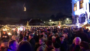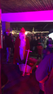Nach und nach füllte sich der Platz mit so vielen Leuten, wie wir sie niemals erwartet hätten. Die Hütten waren hoch frequentiert und die warmen Getränke und Speisen ging flott über die Ladentheke. Die größte Freude an diesem Abend konnte jedoch den Kleinsten unter uns gemacht werden: Gegen 18 Uhr kam der Nikolaus höchstpersönlich zu Besuch! Nachdem die Kinder ein Gedicht vortrugen, hatte er selbstverständlich für jeden etwas zu verschenken.
