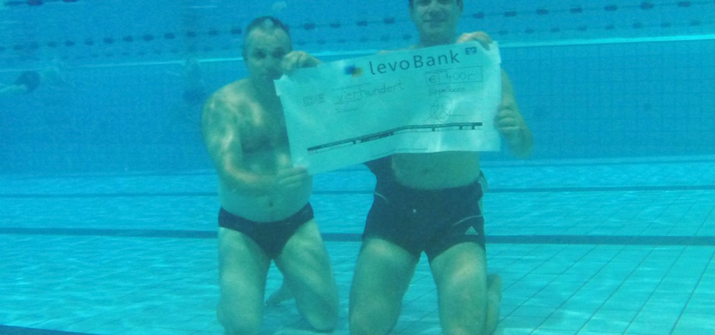 Aus den Erlösen des Sommerfestes (wir berichteten in den Newslettern zuvor) ergab sich diesen Monat die Spendenübergabe bei der DLRG Eppelborn. Die DLRG Eppelborn zeichnet sich durch ihre hervorragende Jungenarbeit aus. Wir von Krämer IT unterstützen gerne Vereine und Organisationen, die sich in besonderem Maße um die Jugendarbeit kümmern. Bei der DLRG sind mehr als 50% der Mitglieder unter 18 Jahren. Das besondere Engagement besteht neben den sportlichen Aktivitäten in dem sozialen Miteinander und den vielen Veranstaltungen, die zusätzlich zum normalen Schwimmen angeboten werden. Durch die Schwimmkurse, in denen jedes Jahr viele Jugendliche das Schwimmen beigebracht wird, leistet die DLRG auch einen wichtigen Beitrag für unsere Gesellschaft und der Sicherheit im Wasser. Dies war Anlass für unseren Chef, dieses Mal eine besondere Spendenübergabe zu machen. Zusammen mit dem Vorstand der DLRG Eppelborn, Markus Baus, wurde der obligatorische Check unter Wasser übergeben. Mit den Worten „blub, blub, blub“ würdigte Michael Krämer die Leistungen der DLRG. Markus Baus bedankte sich mit den Worten „bluba, bluba, bluba“.