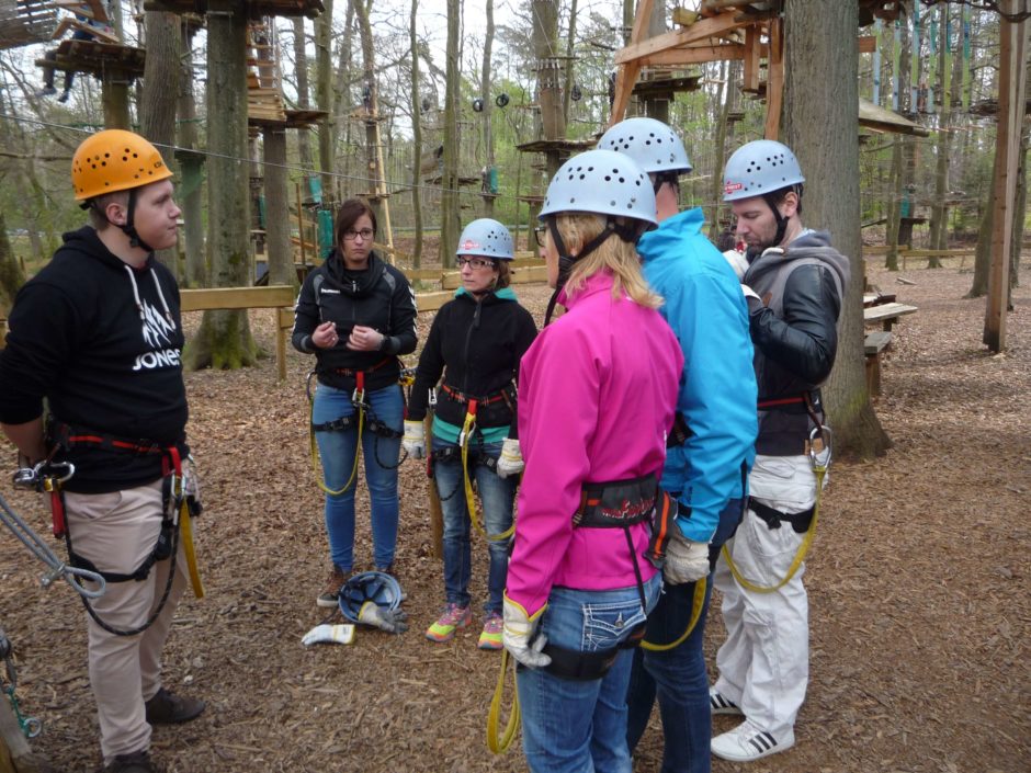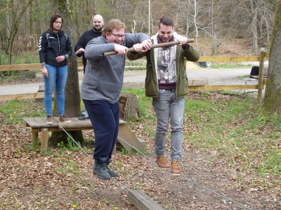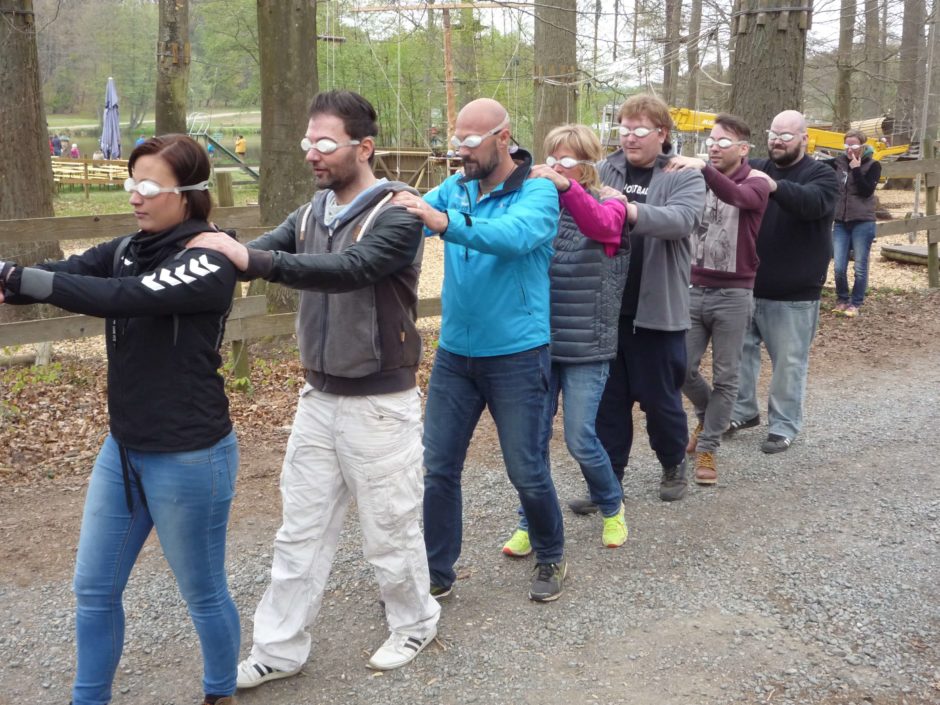 Was stand auf dem Programm? Gemeinsames Frühstück in Bexbach, ein Seminar von Herrn Klitzing zum Thema Teamwork und der Fußmarsch zum Fun Forest, bevor es mit den eigentlichen Aufgaben losging. Für alle, die noch nicht im Fun Forest waren: Es gibt mehrere Stationen, die das Team nur in Teamarbeit lösen kann. Wie so oft im Leben spielt die Zeit eine entscheidende Rolle. Schafft man die Aufgabe nicht in der vorgegeben Zeit, ist die Aufgabe verloren.