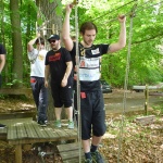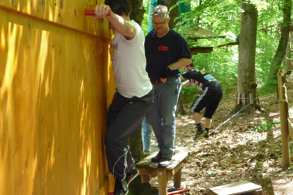 Zum Abschluss des Tages haben wir die Zeit mit “freiem Klettern” im Park genutzt. Jeder Teilnehmer durfte sich mit der Riesenrutsche über den Jägersburger Brückweiher abseilen.