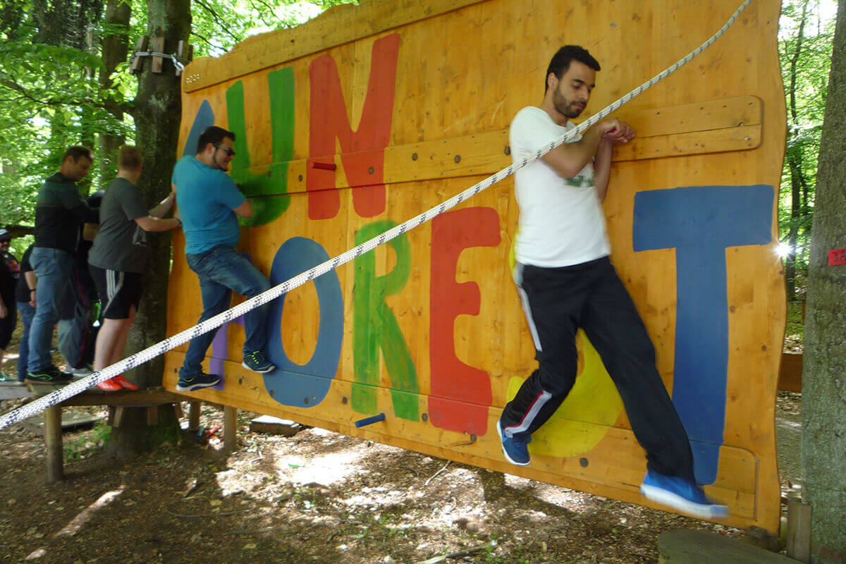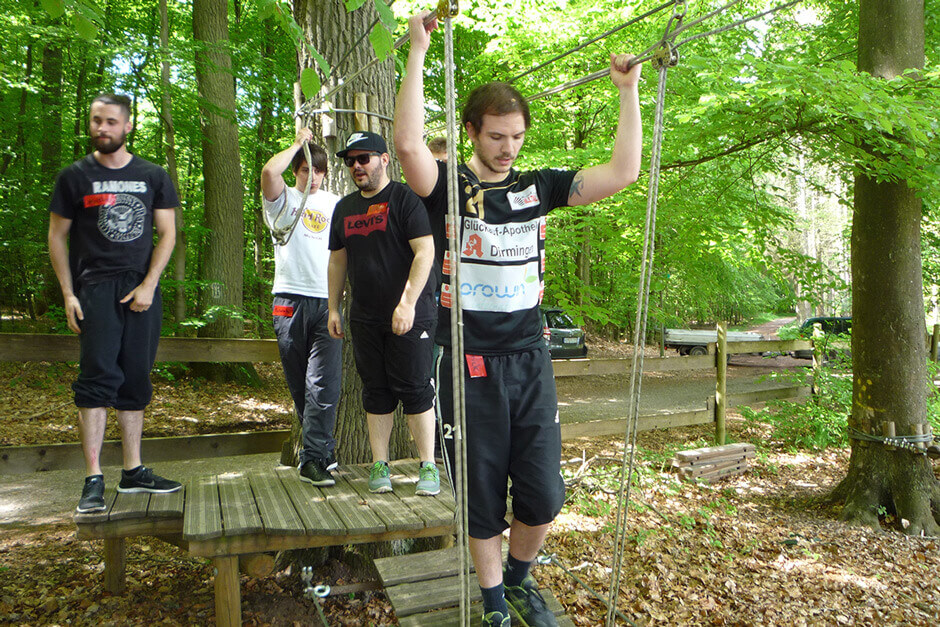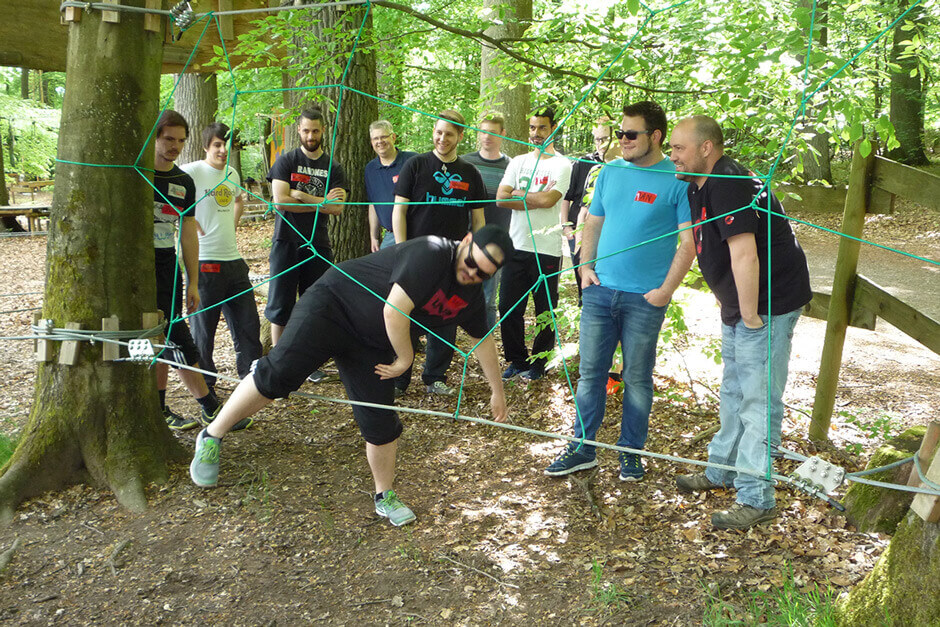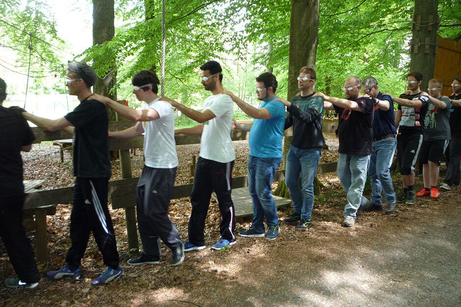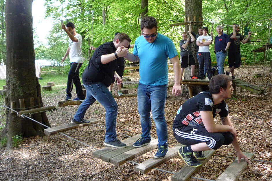 Was stand auf dem Programm? Gemeinsames Frühstück in Bexbach, ein Seminar von Herrn Klitzing zum Thema Teamwork und der Fußmarsch zum Fun Forest, bevor es mit den eigentlichen Aufgaben losging. Für alle, die noch nicht im Fun Forest waren: Es gibt mehrere Stationen, die das Team nur in Teamarbeit lösen kann. Wie so oft im Leben spielt die Zeit eine entscheidende Rolle. Schafft man die Aufgabe nicht in der vorgegeben Zeit, ist die Aufgabe verloren.