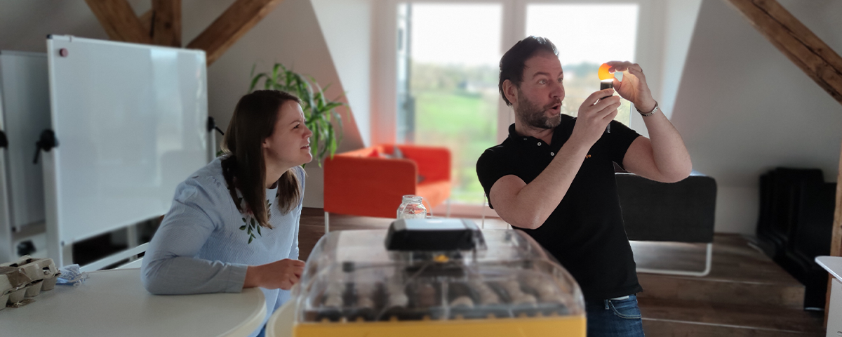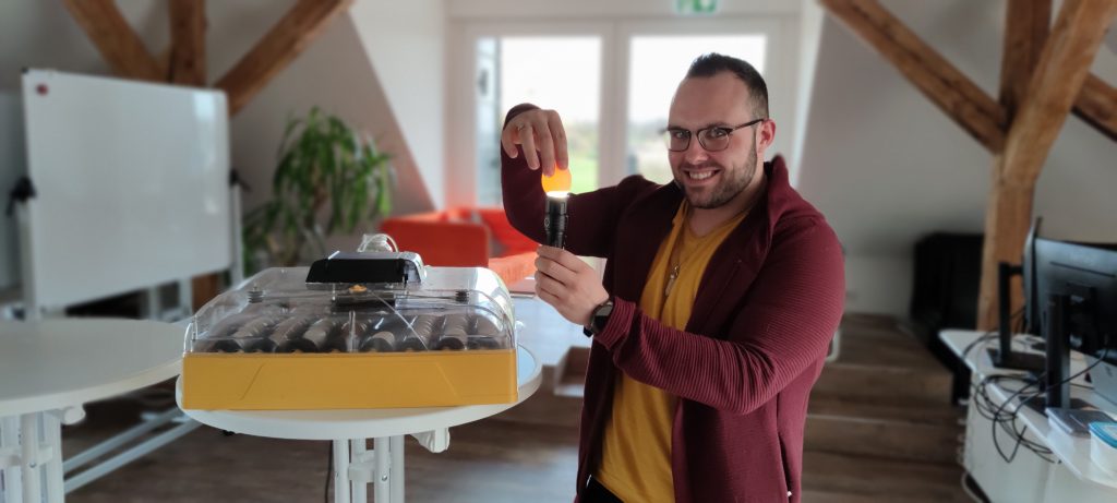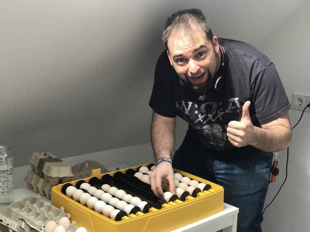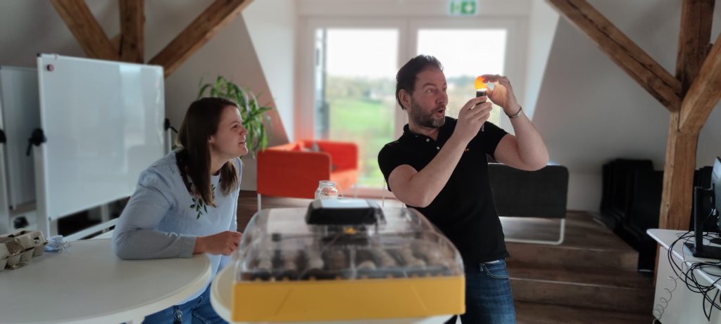 Am 08. April legte das Team gemeinsam die gelieferten Eier nach und nach behutsam in den Brutkasten ein. Für die nächsten 20 Tage standen dann einige To Do’s an:
