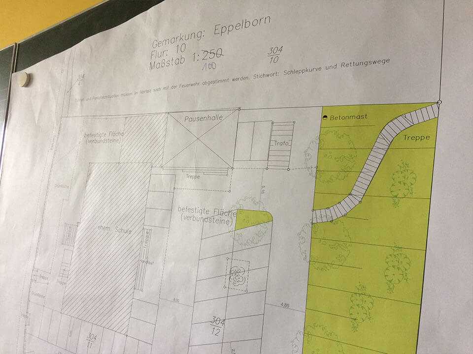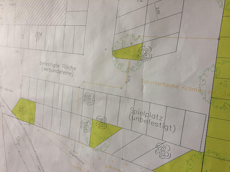 Erste Einblicke verschaffen Ihnen unsere Bilder vom Plan und der derzeitigen Parksituation.
