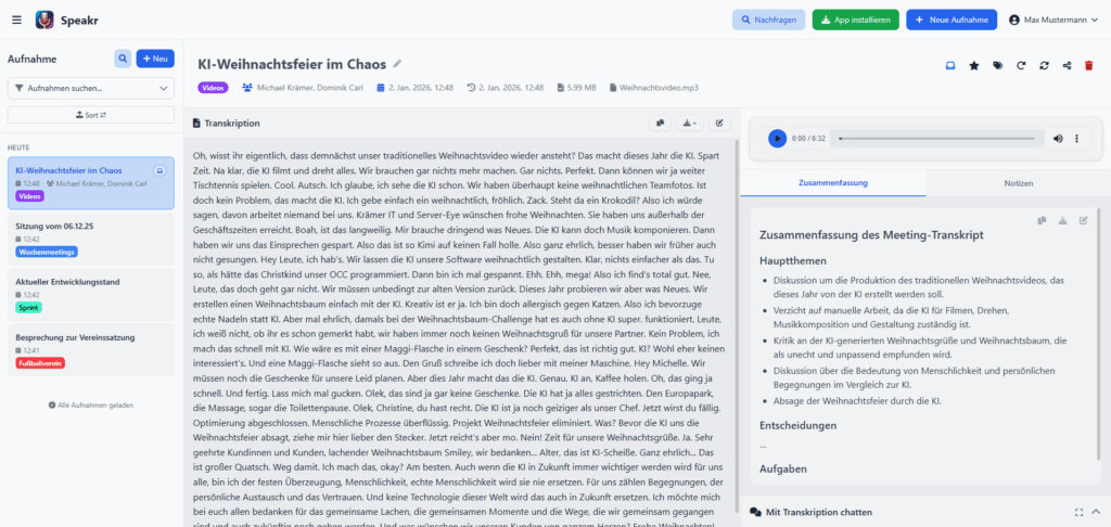 Transkription, Zusammenfassung & Protokoll aus einer Hand
