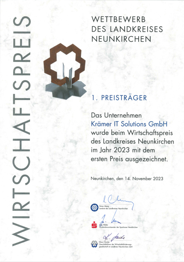 Krämer IT Solutions ist 1A Zukunftsunternehmen.